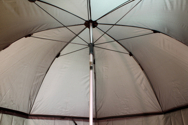 Deštník bočnicí je ideálním přístřeškem při krátkodobých vycházkách k vodě. Určený pro ochranu před sluncem, rosou a deštěm. & Nbsp; Pro výrobu kopule a boční stěny byl použit materiál Nylon. Švy deštníku jsou přelepit voděodolnou páskou pro zabezpečení nepromokavosti. K dispozici je boční, prodloužená stěna která se upevňuje pomocí zipu okolo kopule. Spodní část boční stěny je osazena úchyty pro připevnění k zemi pomocí zajišťovacích kolíků (kolíky jsou součástí dodávky). Zipy jsou plně překryty kusem látky pro zajištění jejich nepromokavosti. Deštník disponuje možností nastavení výšky a sklonu kopule.