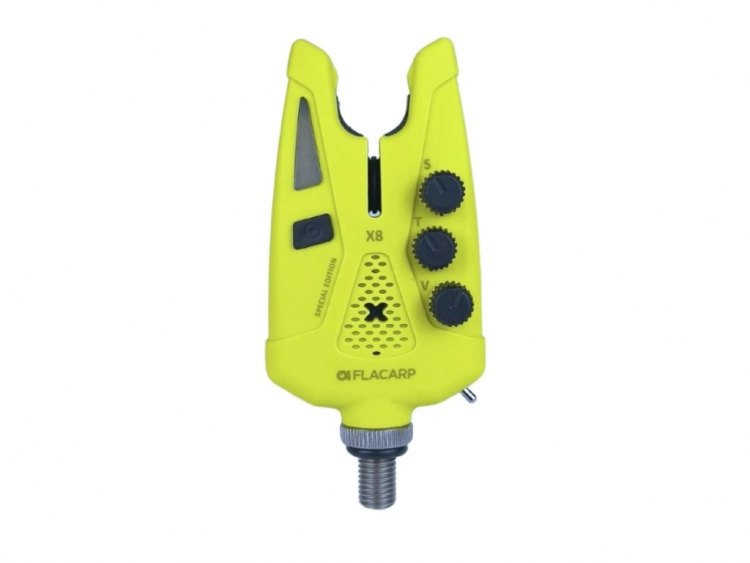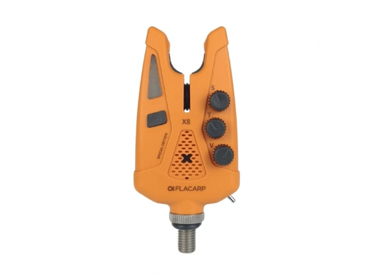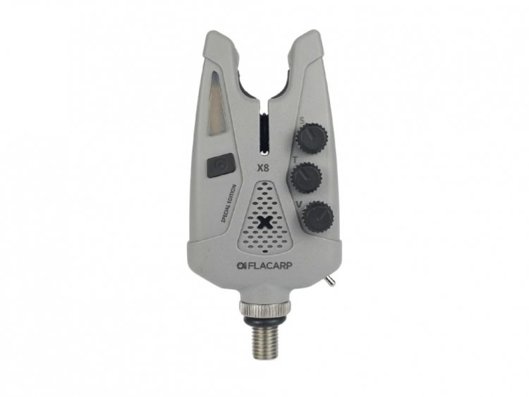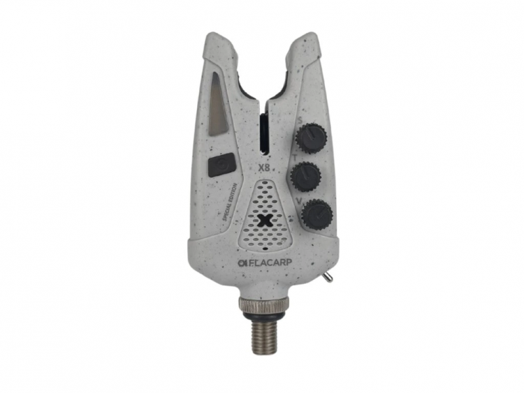 Konečné české upozornovače záberu, FLACARP X8, vycházejí z populárního modelu X7 a přidávají řadu užitečných funkcí. Kromě osvědčeného designu, velmi vysoké mechanické odolnosti, přesného senzoru odvíjení vlasce s pohybem od 1,5 mm v obou směrech a v neposlední řadě napájení pomocí běžných AAA baterií byly přidány nové funkce: