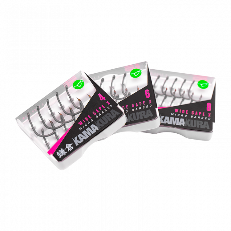 Kamakura Wide Gape X je vylepšenou verzí tohoto klasického vzoru s hrubším drátem, ale s precizním ostřím, jemnějším hrotem než má standardní háček „X“ - je pravděpodobné, že budete muset háček po každé ryběměnit, protože ostří je sice velmi ostré avšak choulostivé.