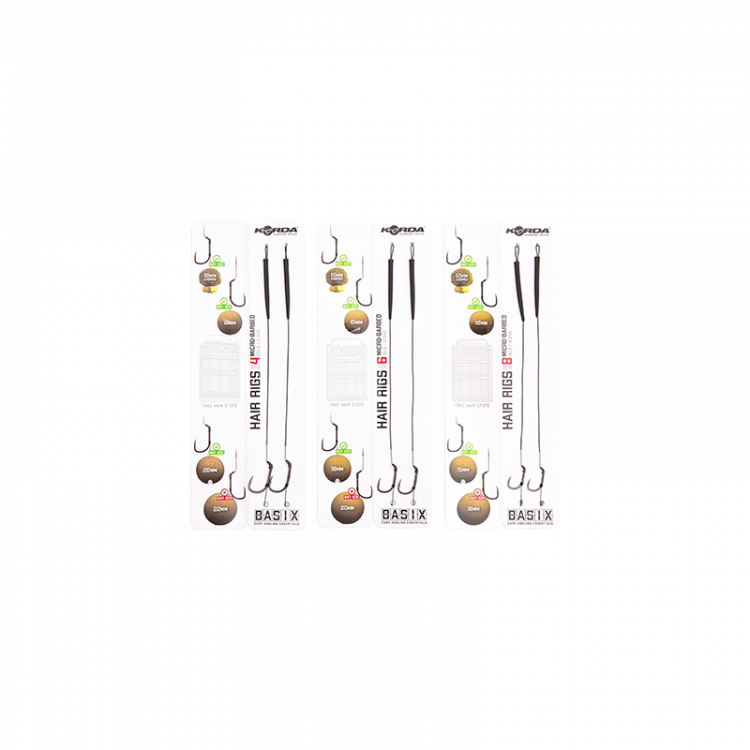 Montáže BASIX Ready Tied Hair Rigs jsou hotové montáže které stačí jen vytáhnout z balení a jsou připraveny k použití, vše, co jen musíte udělat, je přidat boilie nebo waftersky, a můžete nahodit! Tyto montáže jsou navázanébz nové potahovaní šnůrky v Camo verzi BASIX Coated Hooklink která je ztažená před háčkem BASIX Wide Gape, tak aby měl háček volný pohyb a efektivněji se zasekával.