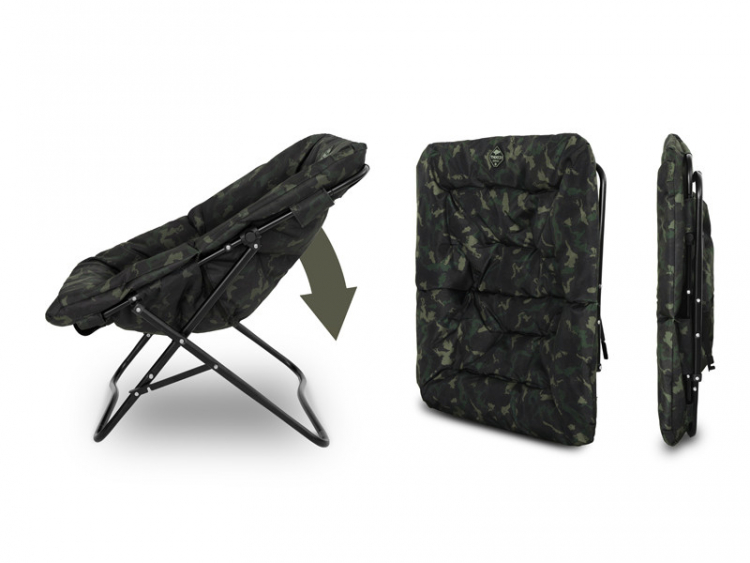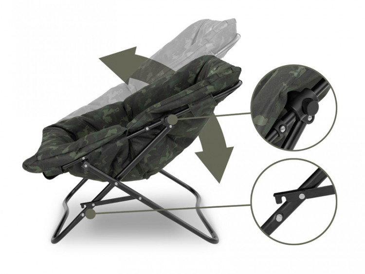 Jeho základ tvoří pevná X-ková kovová konstrukce, kterou lze složit nebo rozložit doslova během vteřiny. Tento typ konstrukce zaručuje vysokou stabilitu a zároveň si po složení zachovává co nejkompaktnější rozměry. Konstrukce je navíc polohovatelná a za pomoci plastových pojistek si tak můžete křeslo nastavit až do tří poloh. Aby se zamezilo nechtěnému složení křesla během sezení, je křeslo vybaveno zajišťovacím mechanismem.