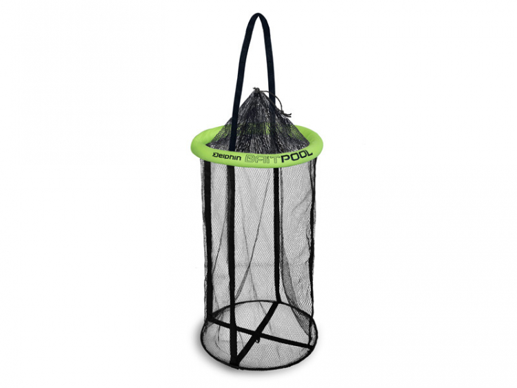 Síťka Delphin BaitPOOL je praktické řešení pro uchovávání nástražních rybek pro lov dravých ryb. Štědré rozměry umožňují přechovávání i větších rybek jako jsou karasi, cejni nebo líni. Kolem obvodu horní části síťky se nachází kruhový plovák, který drží síťku ve svislé poloze. Takové řešení zajišťuje plné rozvinutí síťky ve vodním sloupci a tím vždy dostatek prostoru pro volný pohyb rybek. Výhodou je také rychlé vkládání a vyjímání rybek širokým zatahovacím otvorem.