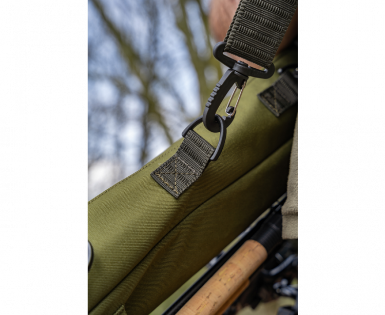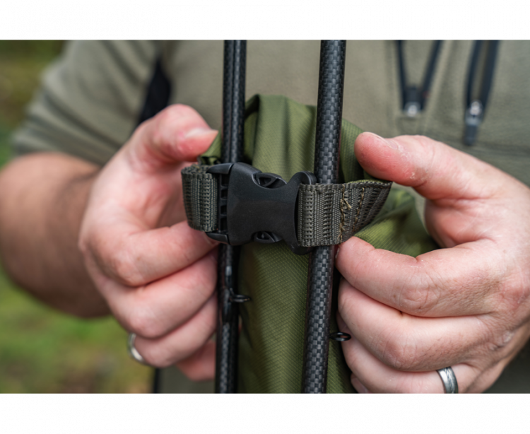 Kompaktní toulec na ryby, který pohodlně pojme dva pruty s dostatečnou vnitřní kapacitou pro brolly. Hlavní přihrádka má uzavíratelnou rolovací střechu.
