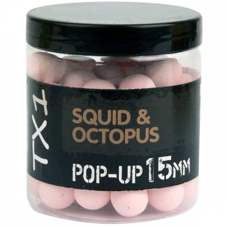 TX1 Pop-ups jsou ideální nástrahy na háček při použití s TX1 Boilies, pokud chcete dosáhnout plovoucí nebo kriticky vyvážené prezentace. Díky široké nabídce příchutí, které doplňují řadu TX1 Boilie, jsou tyto vysoce vizuální nástrahy účinné také jako samostatné nástrahy nebo při lovu na zig rig. Nabízejí vynikající vztlak a dlouhodobé uvolňování chuti a jsou dostupné ve velikostech 12 mm a 15 mm, což umožňuje použití jedné nebo dvou nástrah na háčku.
