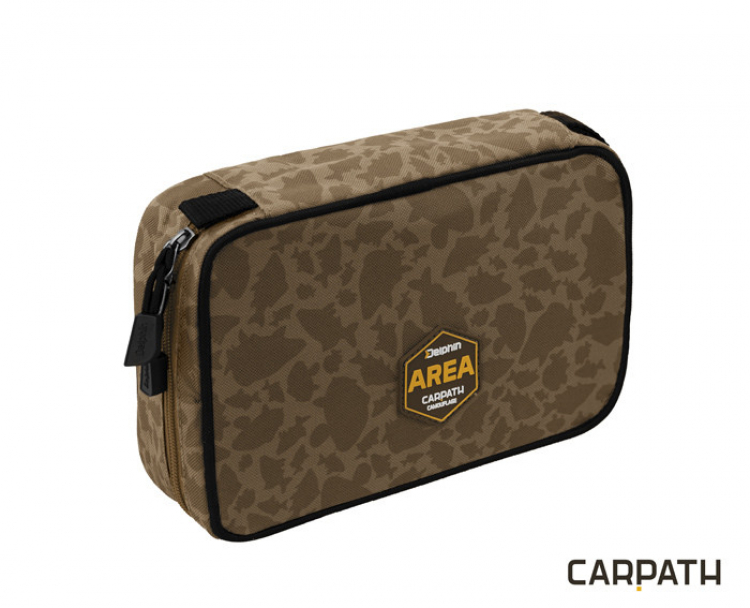 Delphin Area NICE Carpath je taška určená především na hygienické potřeby. Odteď můžete nosit všechno své hygienické vybavení v jedné tašce a mít ho vždy po ruce. Taška je vybavena praktickým popruhem na suchý zip, který je doplněn o plastový háček. To umožňuje zavěšení tašky v bivaku, nebo na kmen či větev stromu a podobně. Na opačném konci jsme umístili popruh na suchý zip, který provlečete středem role toaletního papíru a spojíte. Následně můžete tento toaletní papír bez problémů odvíjet. Uvnitř se nachází kapsa na toaletní papír a další praktické odkládací prostory, které jsou uzavíratelné zipem. Ve střední části se nacházejí 3 přepážky, do kterých si můžete uložit například hřeben, pinzetu, nůžky a jiné. Najdeme zde také malé zrcadlo (5.5x8cm), které je vybaveno plastovou krytkou a připevněné k taštičce prostřednictvím suchého zipu, a v případě potřeby ho můžete i vyjmout. Na venkovní straně je taška opatřena poutkem pro snazší nošení.