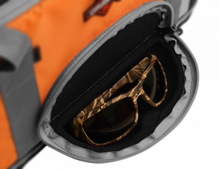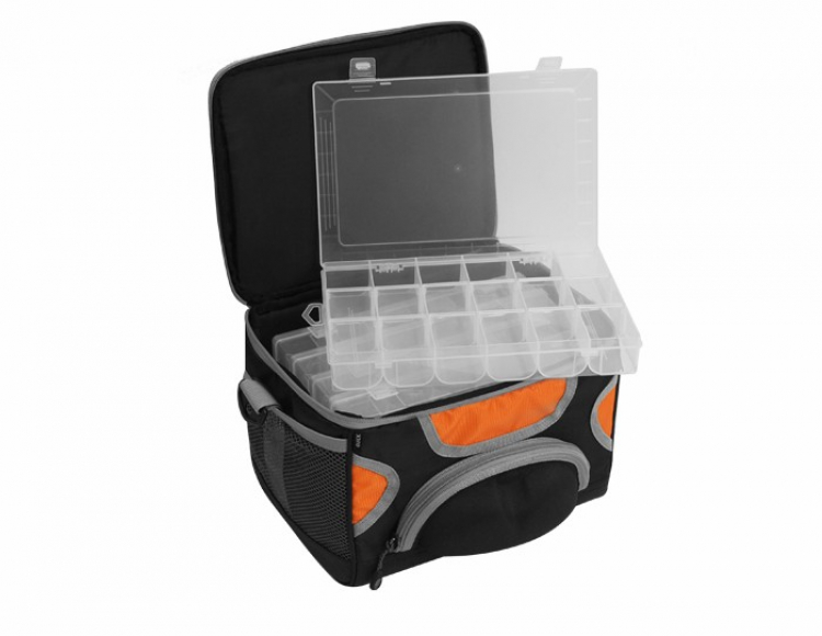 Nepostradatelná taška pro prívlačiarov! Ideální velikost, ideální kapacita, ideální cena! Tuto tašku lze nosit v ruce pomocí textilního úchopu, nebo díky komfortnímu popruhu přes rameno. Už na první pohled vás upoutá výborný detail tvrzeného pouzdra na brýle, které se nachází na přední straně tašky. Z jedné boční strany je to zas držák na peán. Na té druhé se nachází síťová kapsa rozměru 22x16cm. Celá spodní část tašky je obšitá nepromokavou tvrzenou PVC vrstvou, díky čemuž více nemusíte přemýšlet, kam tašku kladete. Uvnitř se nachází 5 prostorných boxů, které se velmi snadno vybírají. Jsou rozměrově identické (27,5x18x4,2cm). Každý z těchto boxů je rozdělen na 6 pevných přihrádek rozměru 5x18x4cm. Navíc má každý box 12 vkladateľných přepážek. Boxy (Delphin B-06) se prodávají jako samostatné příslušenství.