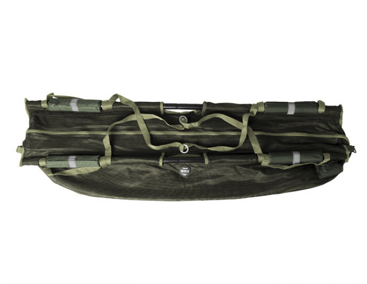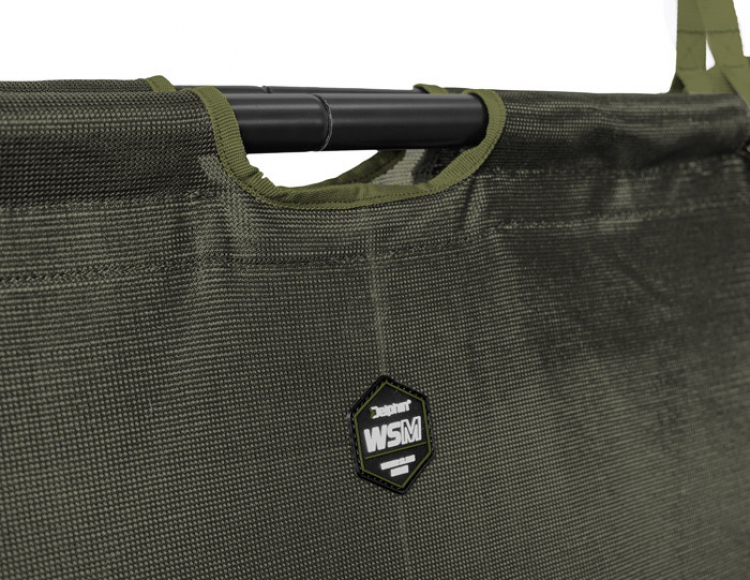 Vážící taška vyrobena z pevného síťovaného materiálu, kterou můžete díky plovákům a síťovanému materiálu použít i jako přechovávací sak před tím, než rybu zvážíte, či pustíte. Díky reflexním páskám na plovácích uvidíte tašku po rozsvícení čelovkou ve vodě i po tmě. Síťovaný materiál kromě toho snižuje celkovou hmotnost tašky a při zvedání a manipulaci s rybou všechna voda vyteče, tedy nepřetěžuje se materiál a umožňuje i přesnější vážení. Masivní zip je po obou bocích tašky a rovněž na vrchní části, to znamená, že WSM dokážete téměř celou rozepnout pro příjemnější manipulaci s rybou. Pevné hliníkové trubky o průměru 25mm je možné bez problémů složit, aby při transportu nezabíraly místo. Díky dlouhým textilním popruhům je zavěšení na trojnožku velmi komfortní a jednoduché. Tyto popruhy mají kovová oka na zavěšení tašky na hák váhy apod. Na běžné přenášení poslouží čtyři kratší popruhy v rozích tašky. Samozřejmostí je kotevní šňůra s délkou až 4,5m a se závitem na konci. Díky tomuto systému je kotvení na břehu velmi bezpečné. Šňůra je umístěna v integrovaném a diskrétním sáčku na boku tašky. Ve vrchní části a také na boku se nachází klip, který slouží k fixování běžců zipu, aby nedošlo k nechtěnému otevření tašky, nebo lze klipy použít jako další body na kotvení.